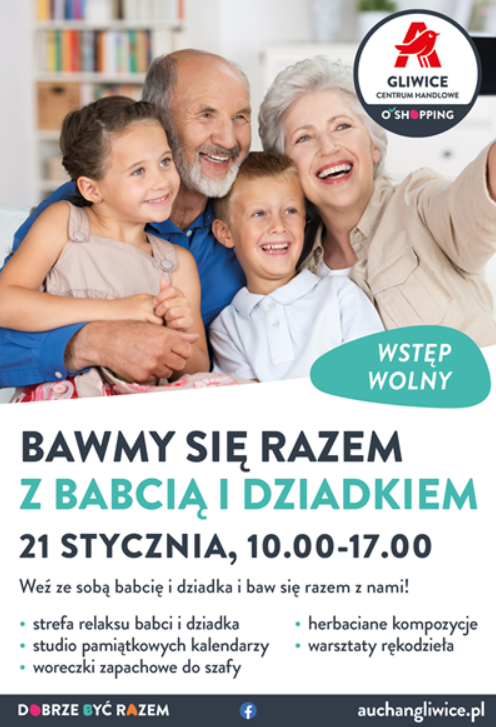 Rodzinne warsztaty z okazji Dnia Babci i Dziadka odbędą się 21 stycznia w Centrum Handlowym Auchan Gliwice przy ulicy Rybnickiej 207 w Gliwicach oraz w Centrum Handlowym Auchan Mikołów przy ulicy Gliwickiej 3 w Mikołowie. Wstęp wolny.