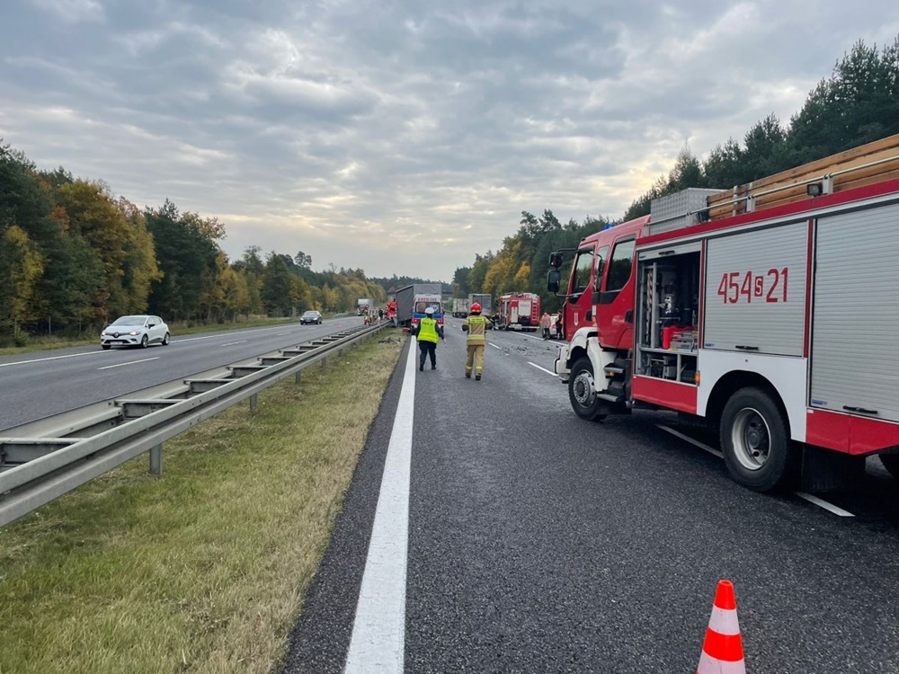 Na 293. kilometrze, w kierunku Katowic, samochód dostawczy najechał w tył jadącej przed nim ciężarówki, a następnie uderzył w bariery.