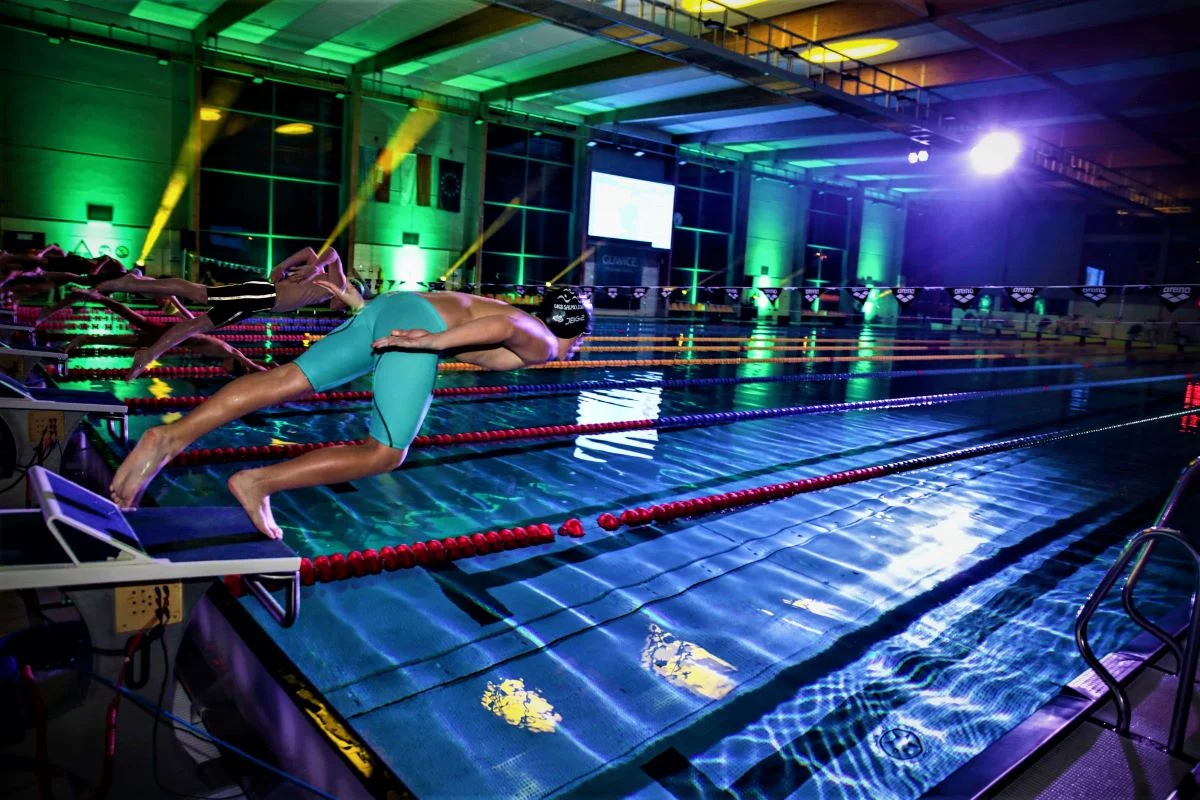 Ponad 570 zawodników i zawodniczek z niemal 50 klubów z całej Polski rywalizowało na gliwickim „Olimpijczyku” w wyjątkowych okolicznościach – po zmroku, w rytm muzyki, buchającego ognia i przeszywających ciemność kolorowych świateł. Sobotnie zawody Gliwice Night&Lights Swim 2025 to było prawdziwe sportowe i wizualne show!
