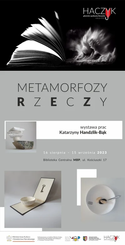 Od 16 sierpnia Miejska Biblioteka Publiczna zaprasza na „Metamorfozy rzeczy”, czyli ekspozycję prac Katarzyny Handzlik-Bąk – absolwentki wrocławskiej Akademii Sztuk Pięknych, Wydziału Ceramiki i Szkła. Artystka zawodowo związana jest z Uniwersytetem Śląskim. W Instytucie Sztuk Plastycznych Wydziału Sztuki i Nauk o Edukacji prowadzi autorską pracownię Sztuki Przedmiotu. Jej twórczość skupiona jest wokół działań przestrzennych: ceramiki, asamblażu oraz ready-made. Handzlik-Bąk zajmuje się też kolażem i małą formą graficzną, w szczególności ekslibrisem. Swoje prace prezentowała na kilkudziesięciu wystawach indywidualnych w Polsce, Danii, Finlandii i Wielkiej Brytanii, uczestniczyła w wielu międzynarodowych prezentacjach sztuki w Europie, Azji i USA. Jest laureatką nagród i wyróżnień w konkursach międzynarodowych, należy do Związku Polskich Artystów Plastyków oraz Deutsche Exlibris Gesellschaft.