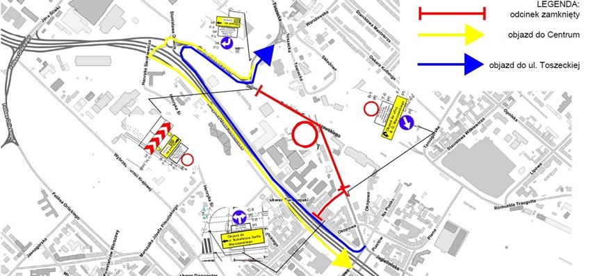 Planowany termin przywrócenia ruchu na zamykanym odcinku ul. Bohaterów Getta Warszawskiego to 31 maja.