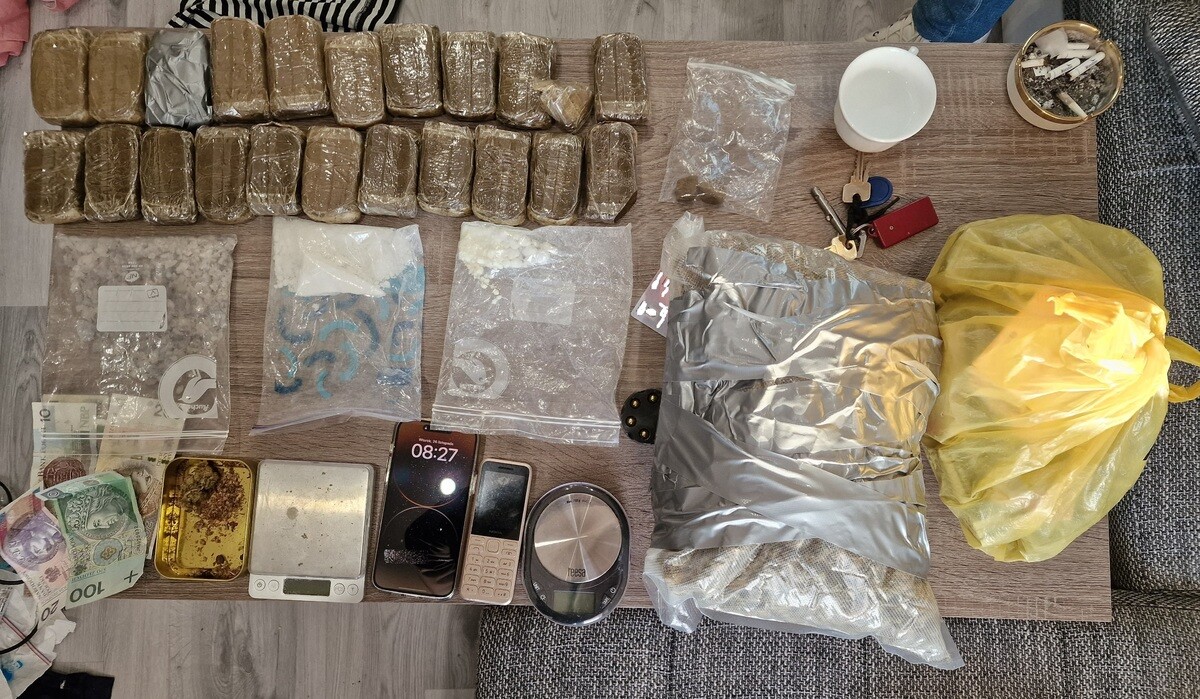 Mężczyzna był poszukiwany przez kryminalnych z Komisariatu Policji III w Gliwicach. Ścigany czterema listami gończymi, ukrywał się, a jednocześnie – jak ustalili kryminalni – działał w środowisku związanym z narkobiznesem. Już po ustaleniu miejsca pobytu stróże prawa mieli pewność, że przy zatrzymanym znajdą środki odurzające. Po przeszukaniu mieszkania, piwnicy oraz samochodu podejrzanego, zabezpieczono 70 gramów amfetaminy, prawie 140 gramów metamfetaminy, prawie kilogram marihuany i ponad 2 kilogramy haszyszu.