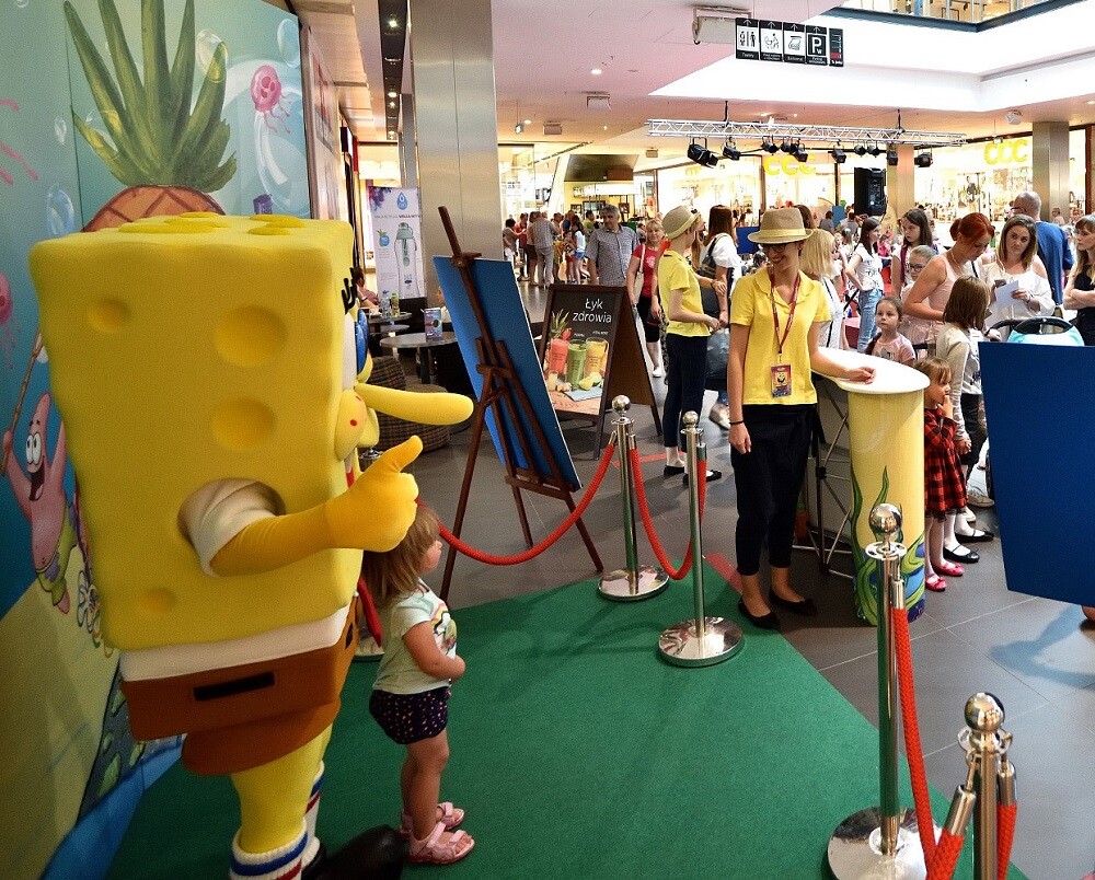 Dzieci będą mogły zrobić sobie zdjęcie ze SpongeBobem, stworzą dzieła sztuki, poskaczą na trampolinach, złapią meduzę, wejdą do Tunelu Śmiechu, a także zmierzą swoją radość w zwariowanym Śmiechomacie. Do tego zamienią się w bajkowych bohaterów w strefie malowania buziek, a także spróbują swoich sił w podwodnej grze w kółko i krzyżyk.