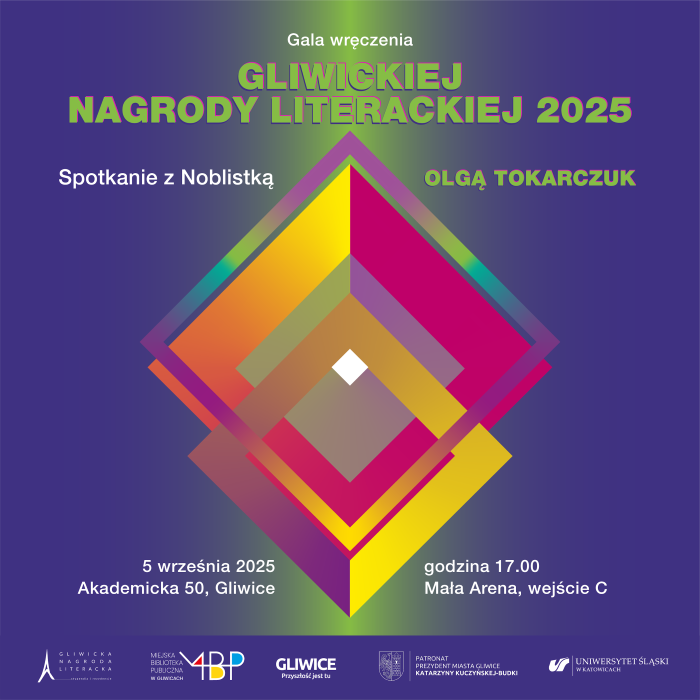 Miłośnicy literatury już dziś mogą zaznaczyć w kalendarzu datę 5 września. Tego dnia o godz. 17.00 w Małej Arenie PreZero Areny Gliwice rozpocznie się bowiem gala pierwszej edycji Gliwickiej Nagrody Literackiej – ogłoszonego w marcu projektu Miejskiej Biblioteki Publicznej oraz Miasta Gliwice, którego partnerem jest Uniwersytet Śląski w Katowicach. W programie przewidziano także spotkanie autorskie z Noblistką Olgą Tokarczuk, które poprowadzi prof. Ryszard Koziołek.