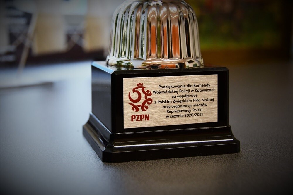 Polski Związek Piłki Nożnej w podziękowaniu za współpracę na rzecz zapewnienia bezpieczeństwa podczas rozgrywek piłki nożnej w sezonie 2020/2021 przyznał jednostkom Policji okolicznościowe puchary.