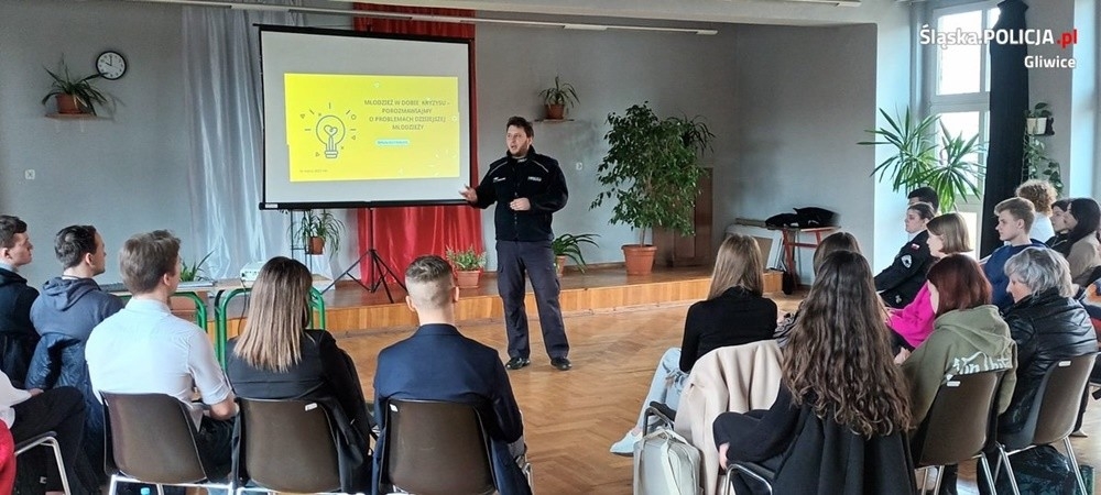 Funkcjonariusze prewencji gliwickiej Policji kontynuują cykl spotkań z młodzieżą szkół średnich. Debaty już przeprowadzone, ale również te planowane, poświęcone są omawianiu przyczyn problemów trapiących młode osoby.