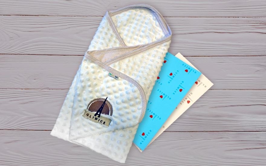 W skład wyprawki wchodzi m.in. dwustronny kocyk z kolorowej bawełny w kratkę i niezwykle miękkiego i przyjemnego w dotyku pluszu minky oraz elastyczny komin z przyjemnego materiału, który z powodzeniem może ochronić szyjkę lub główkę maluszka. Dostępne będą dwie wersje kolorystyczne – beżowa i niebieska. Każdy z upominków będzie zawierał element identyfikacji wizualnej miasta.
