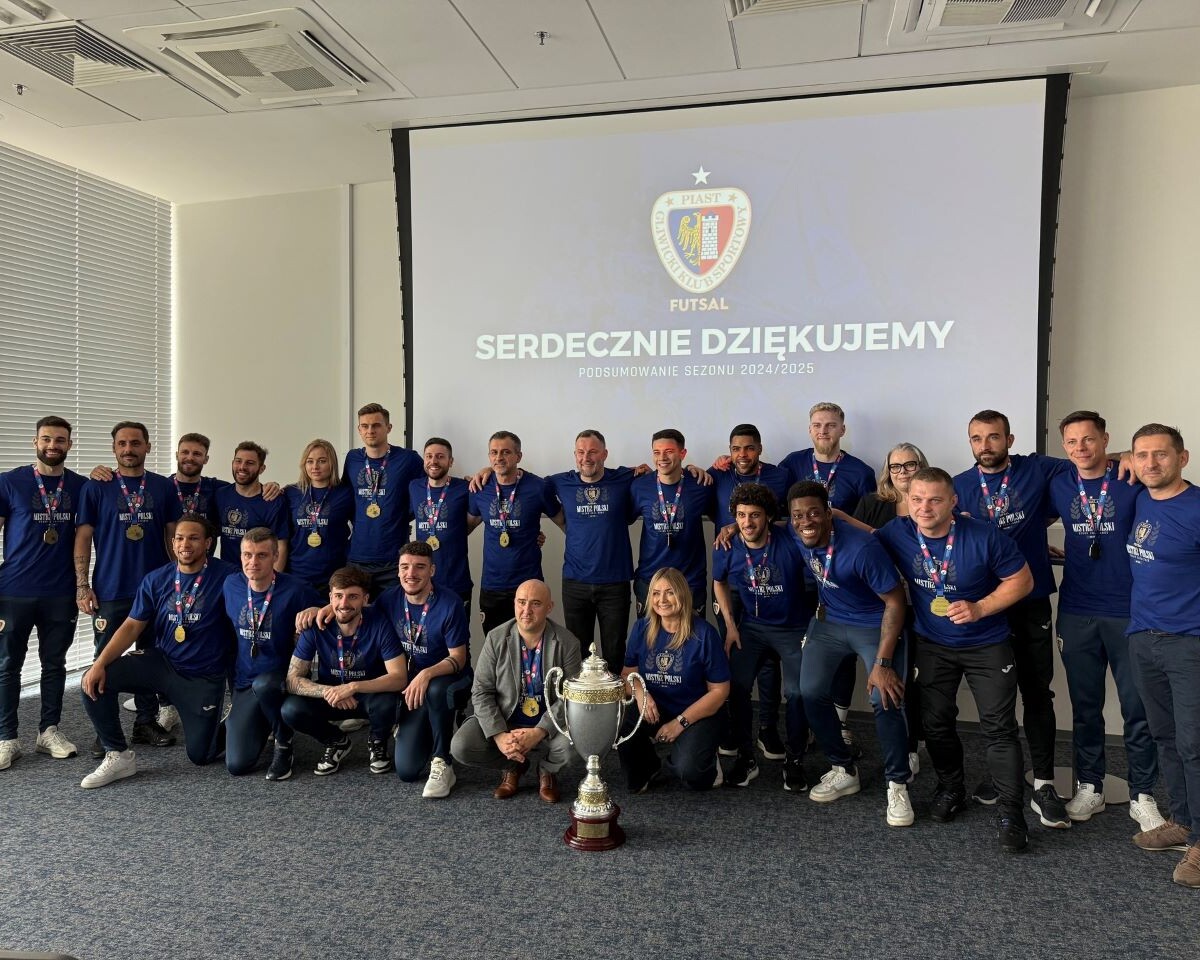 Przypomnijmy, Piast Gliwice Futsal po raz drugi w historii wywalczył mistrzostwo Polski. W drodze po złoto gliwiczanie trzykrotnie pokonali w finale drużynę Constract Lubawa – najpierw w Gliwicach (4:0), a następnie dwukrotnie w Lubawie (5:1 i 2:1). Ponadto kapitan naszych – Michał Widuch – został najlepszym zawodnikiem meczów finałowych. Brawo, Piast Gliwice Futsal!