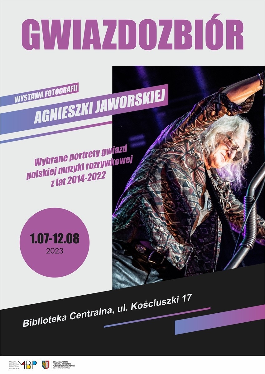 Biblioteka Centralna zaprasza na "GWIAZDOZBIÓR. Wybrane portrety gwiazd polskiej muzyki rozrywkowej z lat 2014 – 2022 – wystawa fotografii Agnieszki Jaworskiej", które odbywać będą się od 1 lipca do 12 sierpnia.