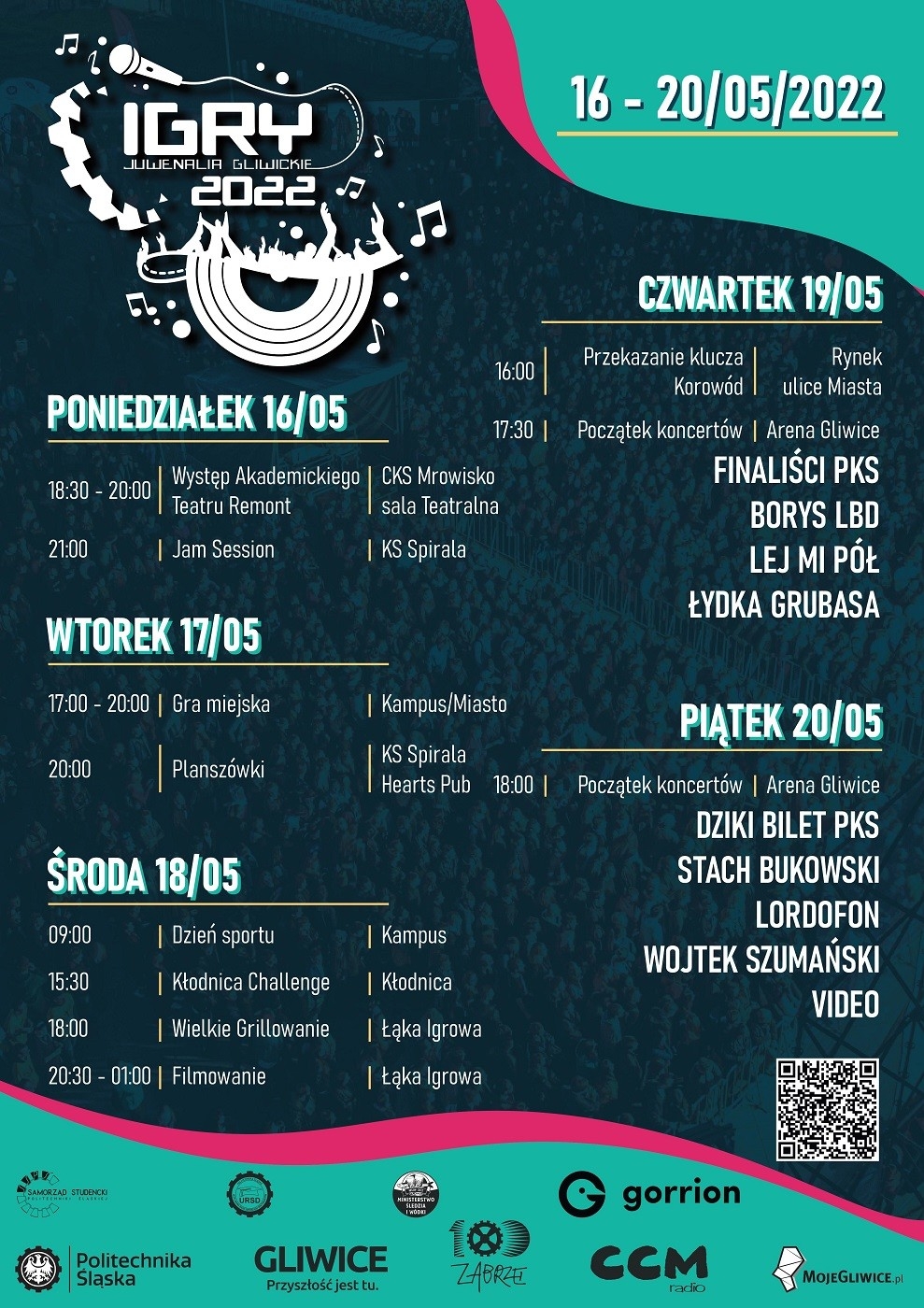 W dniach 16.05 - 20.05. 2022 w Gliwicach odbywać się będą IGRY - Juwenalia Gliwickie.