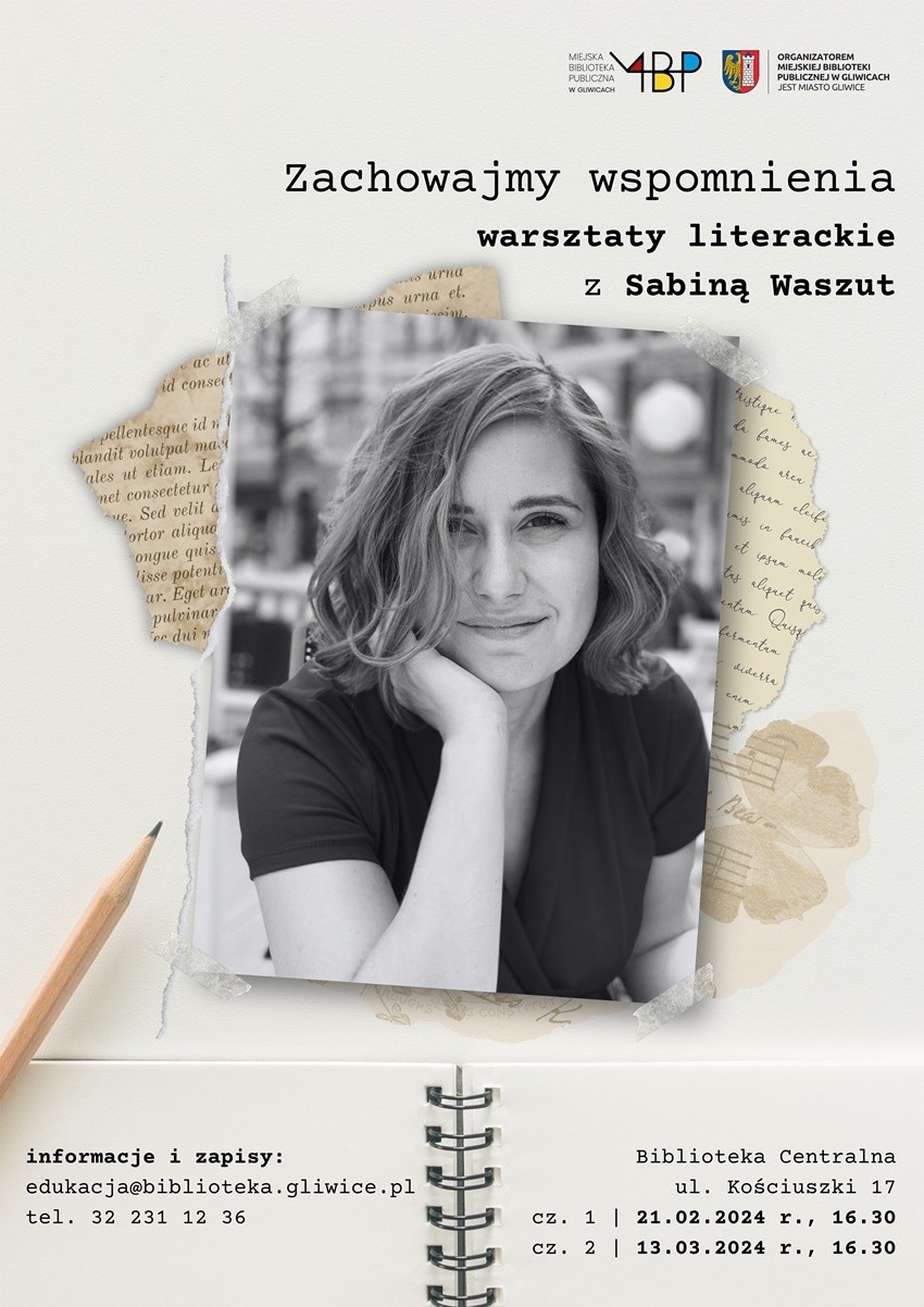Biblioteka Centralna w Gliwicach zaprasza na Klub Pisarzy – spotkanie warsztatowe z Sabiną Waszut, które odbędzie się 21 lutego o godz. 16.30.