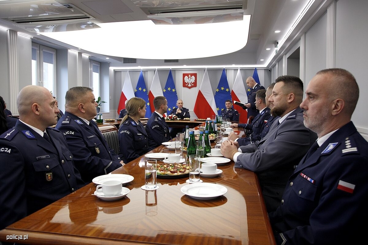 Jak co roku, tuż przed Centralnymi Obchodami Święta Policji w Komendzie Głównej Policji w Warszawie, 22 lipca 2025 r. odbyło się uroczyste spotkanie laureatów Ogólnopolskiego Konkursu „Policjant, który mi pomógł” z I zastępcą Komendanta Głównego Policji nadinsp. Romanem Kusterem. Podczas spotkania laureatom towarzyszyli przełożeni oraz komendanci wojewódzcy i stołeczny Policji, a także kapelani policyjni.