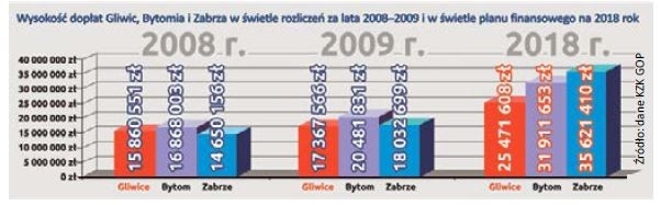 W Gliwicach wielkość tzw. pracy przewozowej (eksploatacyjnej) kształtuje się obecnie na poziomie 7 043 309 wozokilometrów, co od lat plasuje nasze miasto na 3 miejscu w grupie miast członkowskich KZK GOP. Większa praca przewozowa niż w Gliwicach zaplanowana jest na ten rok w Katowicach (19 776 886 wozokilometrów) i Sosnowcu (8 703 149 wozokilometrów). Miasta te dopłacają do komunikacji zbiorowej w regionie najwięcej. Dotacja Katowic do KZK GOP sięga 94 mln zł, a Sosnowca 51 mln zł. Dopłata Gliwic wynosi 25 mln zł. Skąd te różnice? W ostatnich latach za wysokimi dotacjami Katowic i Sosnowca kryją się m.in. koszty spłaty ogromnego kredytu zaciągniętego na modernizację linii tramwajowych przebiegających przez te gminy.