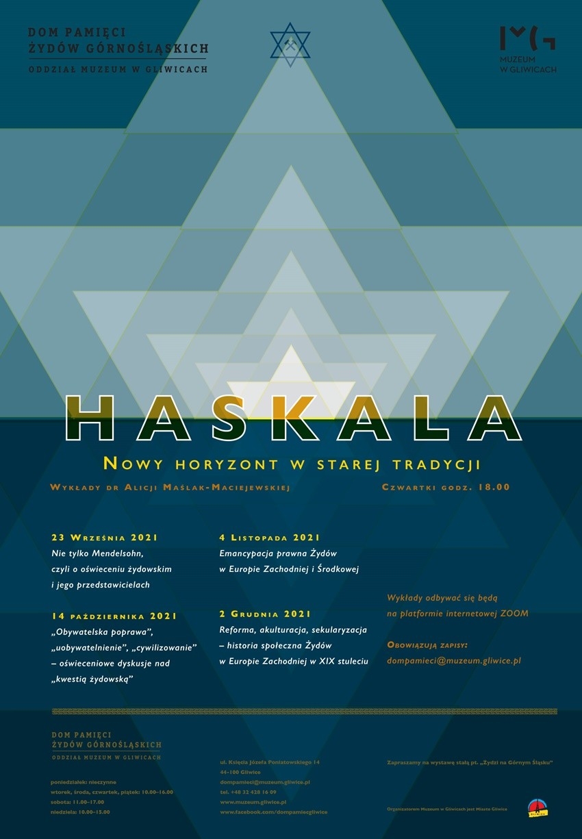 W ramach swojej misji Dom Pamięci Żydów Górnośląskich – Odział Muzeum w Gliwicach bada i popularyzuje dzieje dawnych żydowskich mieszkańców regionu. Dzięki zaangażowaniu wielu specjalistów i społeczników pod koniec 2018 roku została otwarta wystawa stała „Żydzi na Górnym Śląsku”. Jej walory naukowe i kompozycyjne zostały docenione w wielu konkursach i plebiscytach. Wątki poruszane na stałej ekspozycji są stale rozwijane i uzupełniane na wystawach czasowych, w naszych publikacjach, a także podczas cyklów wykładów. Najnowsza propozycja spotkań – „Haskala. Nowy horyzont w starej tradycji”, to próba przedstawienia jednego z najważniejszych zjawisk w historii Żydów europejskich. Dr Alicja Maślak-Maciejewska, autorka wykładów i prowadząca, związana z Uniwersytetem Jagiellońskim, podczas czterech wykładów naświetli nieraz skomplikowane drogi Żydów z zachodniej Europy do pełnej emancypacji prawnej. Bogactwo tego reformatorskiego ruchu sprawia, że spotkania będą fascynującą podróżą przez XVIII i XIX wiek i pomogą zrozumieć jak Żydzi z Górnego Śląska stali się „Żydami jedynie w domu, zaś Europejczykami na ulicy”. Wykład pierwszy, pt. „Nie tylko Mendelsohn, czyli o oświeceniu żydowskim (haskali) i jego przedstawicielach” odbędzie się we czwartek, 23 września, na platformie ZOOM, o godz. 18.00.