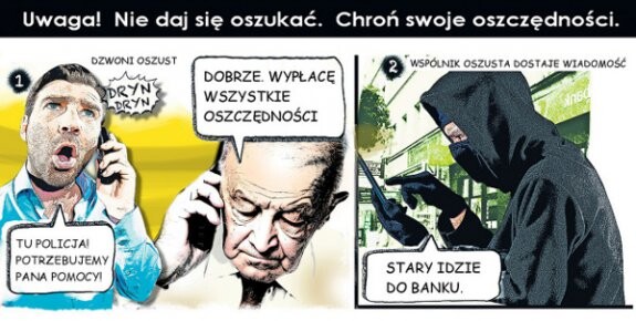 Tylko w czwartek na telefony stacjonarne seniorów z naszego rejonu dzwoniono trzynaście razy. Przynajmniej tyle zgłoszono policji. W piątek kolejnych 5 seniorów odebrało podobne telefony. W dwóch przypadkach starsze panie dały się wciągnąć w oszukańczą grę, postępowały, jak im oszuści kazali i straciły kilkadziesiąt tysięcy złotych.