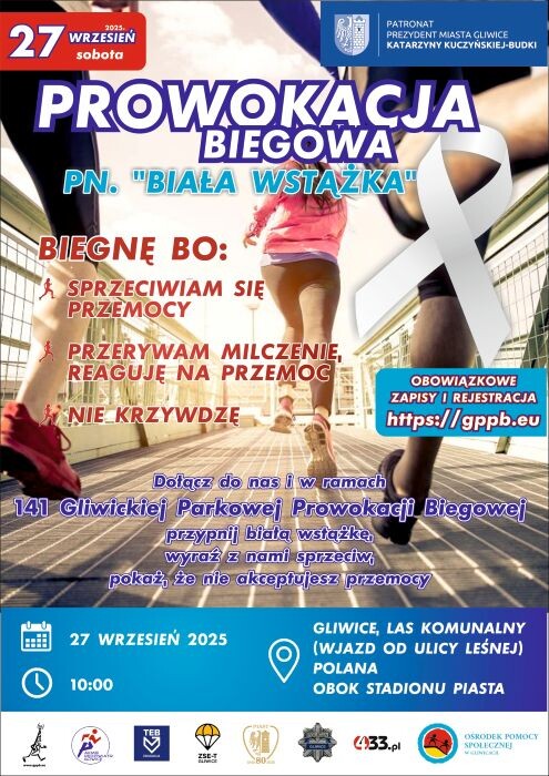 141. Gliwicka Parkowa Prowokacja Biegowa odbędzie się pod ważnym znakiem Białej Wstążki, która jest symbolem sprzeciwu wobec przemocy. Biegnijcie, maszerujcie, spacerujcie – każda forma ruchu jest dobra, a do tego, w najbliższą sobotę – ważna.