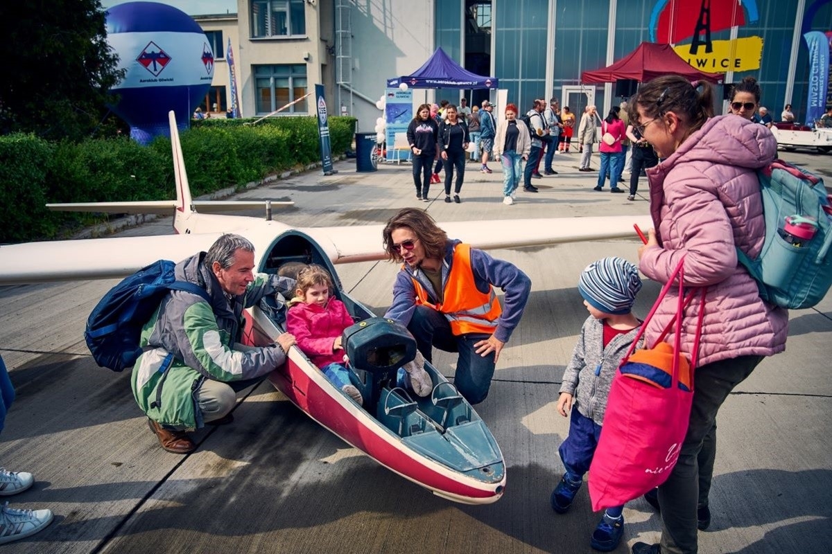 Było też coś dla tych, którzy stąpają twardo po ziemi. Goście mieli okazję – wraz z przewodnikiem – zwiedzić Gliwickie Centrum Edukacji Lotniczej, czyli m.in. bogatą kolekcję zabytkowych szybowców, modelarnię i symulator lotów oraz skorzystać ze stoisk informacyjno-promocyjnych, które pojawiły się przed hangarem. Każdy mógł również wsiąść za stery symulatora lotów i poczuć się — chociaż na chwilę — pilotem. Wraz z mieszkańcami bawiła się tego dnia prezydent Gliwic, Katarzyna Kuczyńska-Budka.
