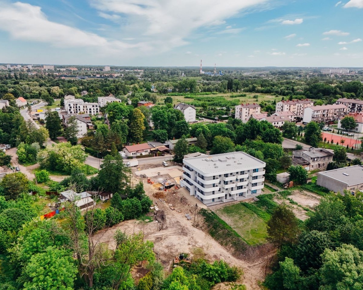 Czterokondygnacyjny budynek z windą i podziemnym garażem oferuje mieszkania o powierzchni od ok. 28 do 57 m² – od kompaktowych kawalerek po przestronne trzypokojowe lokale. Na parterze znajdują się mieszkania z tarasami, z których jedno – całkowicie pozbawione barier architektonicznych – przeznaczone jest dla osoby z niepełnosprawnością. Lokale na wyższych piętrach mają balkony.