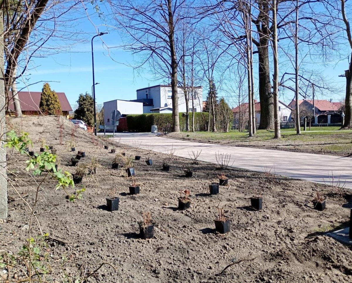 Przestrzeń zdobią już czeremchy Schuberta, teraz obsadzana jest m.in. kalinami koralowymi, krzewuszkami cudownymi, jeżówkami purpurowymi oraz hortensjami, również pnącymi. Dopełnieniem będą przywrotniki miękkie, zawilce, funkie, borówki rozłogowe i barwinki pospolite. Aby uatrakcyjnić to miejsce, zamontowano stolik do gry w szachy.