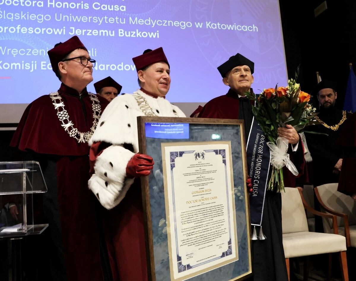 Były premier i przewodniczący Parlamentu Europejskiego, a także honorowy obywatel Gliwic – prof. Jerzy Buzek – otrzymał tytuł doktora honoris causa Śląskiego Uniwersytetu Medycznego w Katowicach.