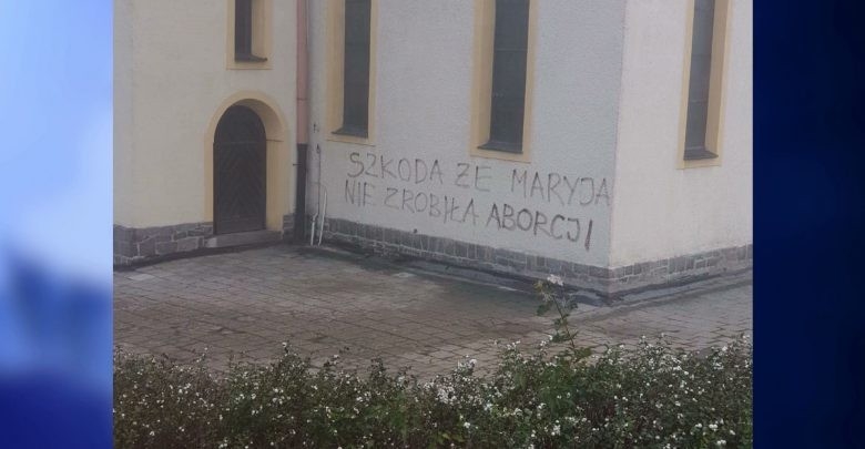 Wulgarnego i politycznego hasła nie udało się do końca zmyć z fasady kościoła w Katowicach na os. Tysiąclecia. Duchowni nie mają wątpliwości, że to, co się dzieje jest coraz bardziej niebezpieczne i nie pomaga samym protestującym.