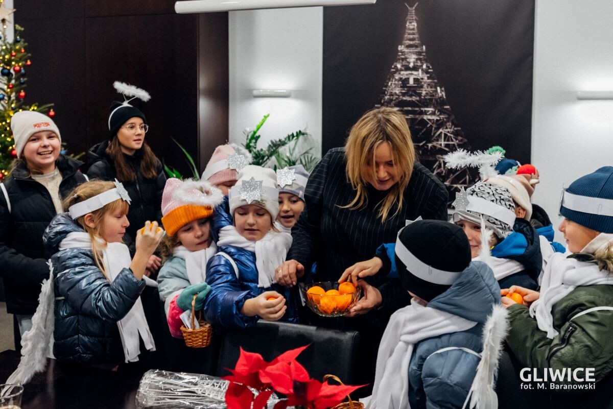 W rolę niebiańskich pomocników wcielili się uczniowie oraz nauczyciele Szkoły Podstawowej nr 1 w Gliwicach, którzy zawitali także do Urzędu Miejskiego, gdzie odwiedzili m.in. prezydent Gliwic, Katarzynę Kuczyńską-Budkę. Z wizytą wpadli też harcerze, którzy tradycyjnie przekazali Betlejemskie Światło Pokoju.