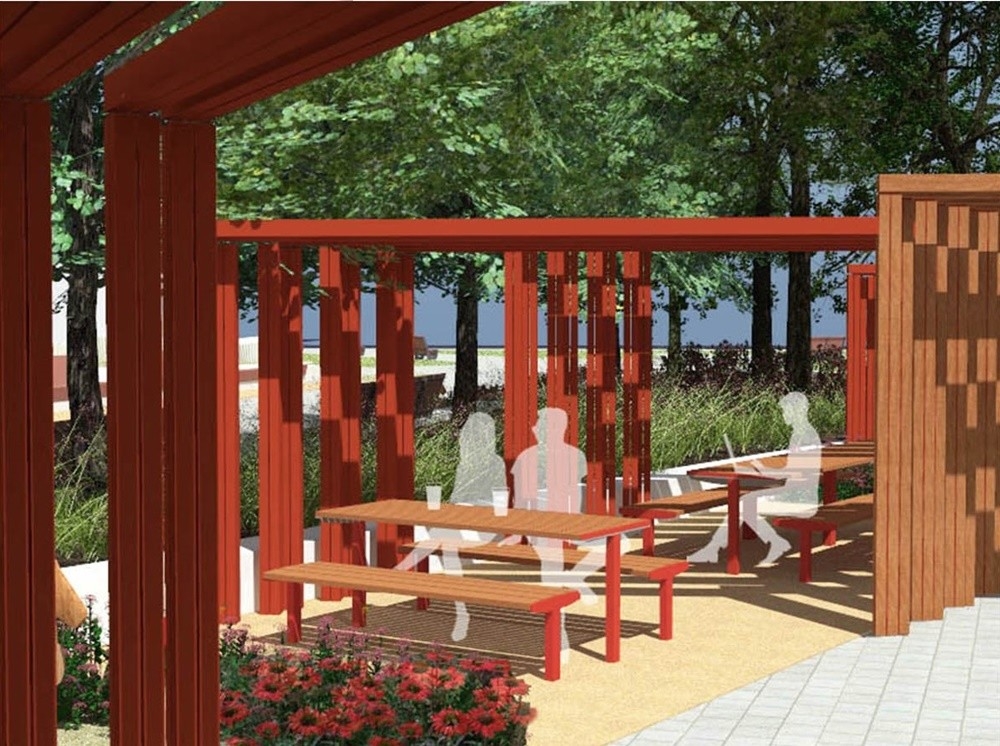 Ze względów technicznych drzewa będą musiały zostać posadzone na podwyższonych rabatach, wypełnionych dużą ilością substratu glebowego, który umożliwi prawidłowy rozwój roślin. W kilku miejscach staną pergole, dzięki którym w gorące, letnie dni będzie można odpocząć w cieniu. Pod częścią z nich zostaną ustawione stoły i ławy piknikowe.
