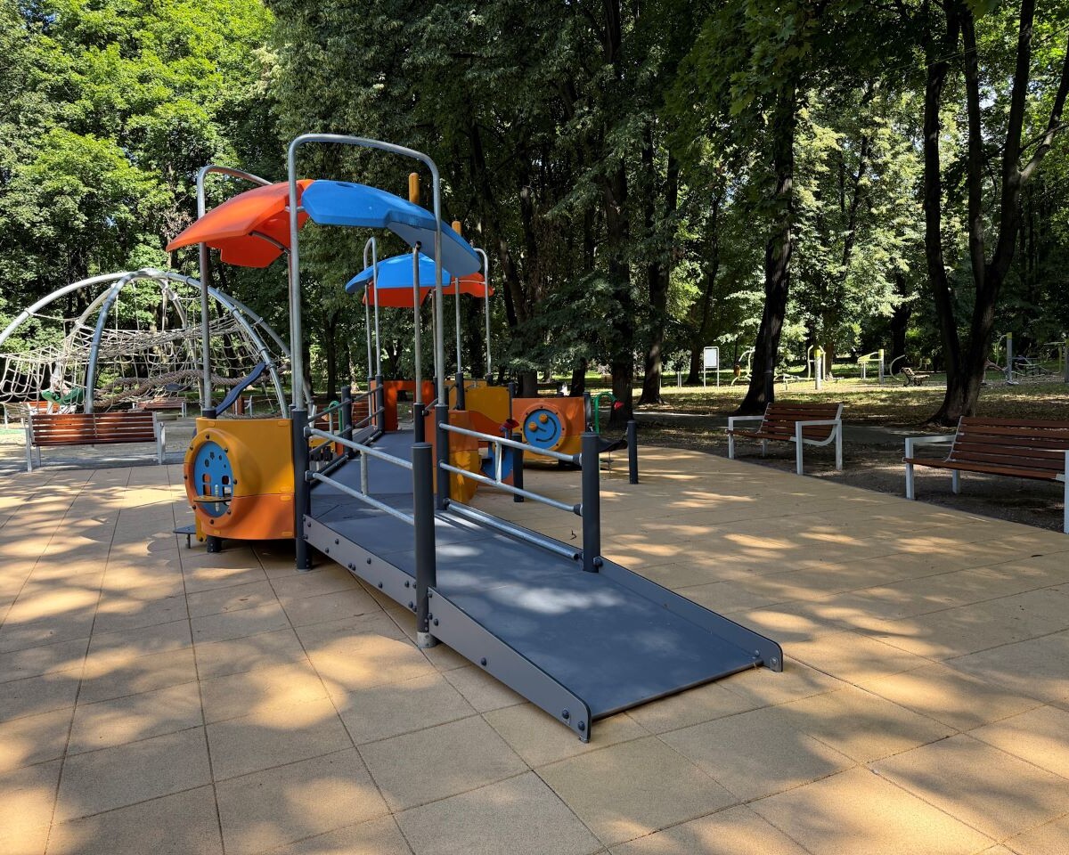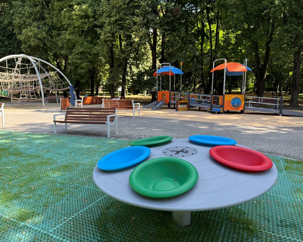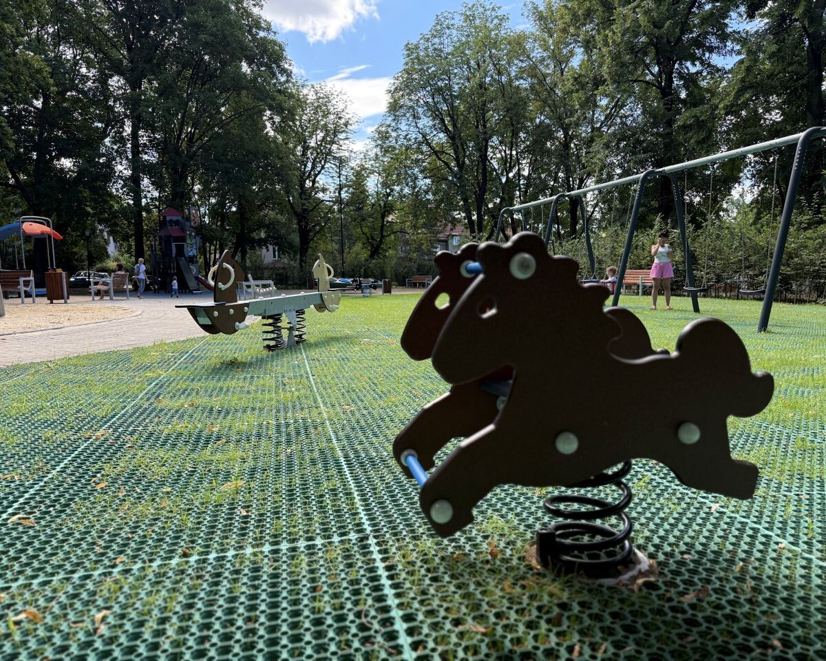 Po krótkiej przerwie plac zabaw jest znów dostępny. I to w lepszej, zmodernizowanej odsłonie. Zamontowano siedem nowoczesnych urządzeń, m.in. huśtawki, w tym taką, na której może huśtać się rodzic z dzieckiem. Jest też karuzela z wyjątkowymi, talerzykowymi siedziskami oraz specjalna platforma zabawowa dla dzieci z niepełnosprawnościami.