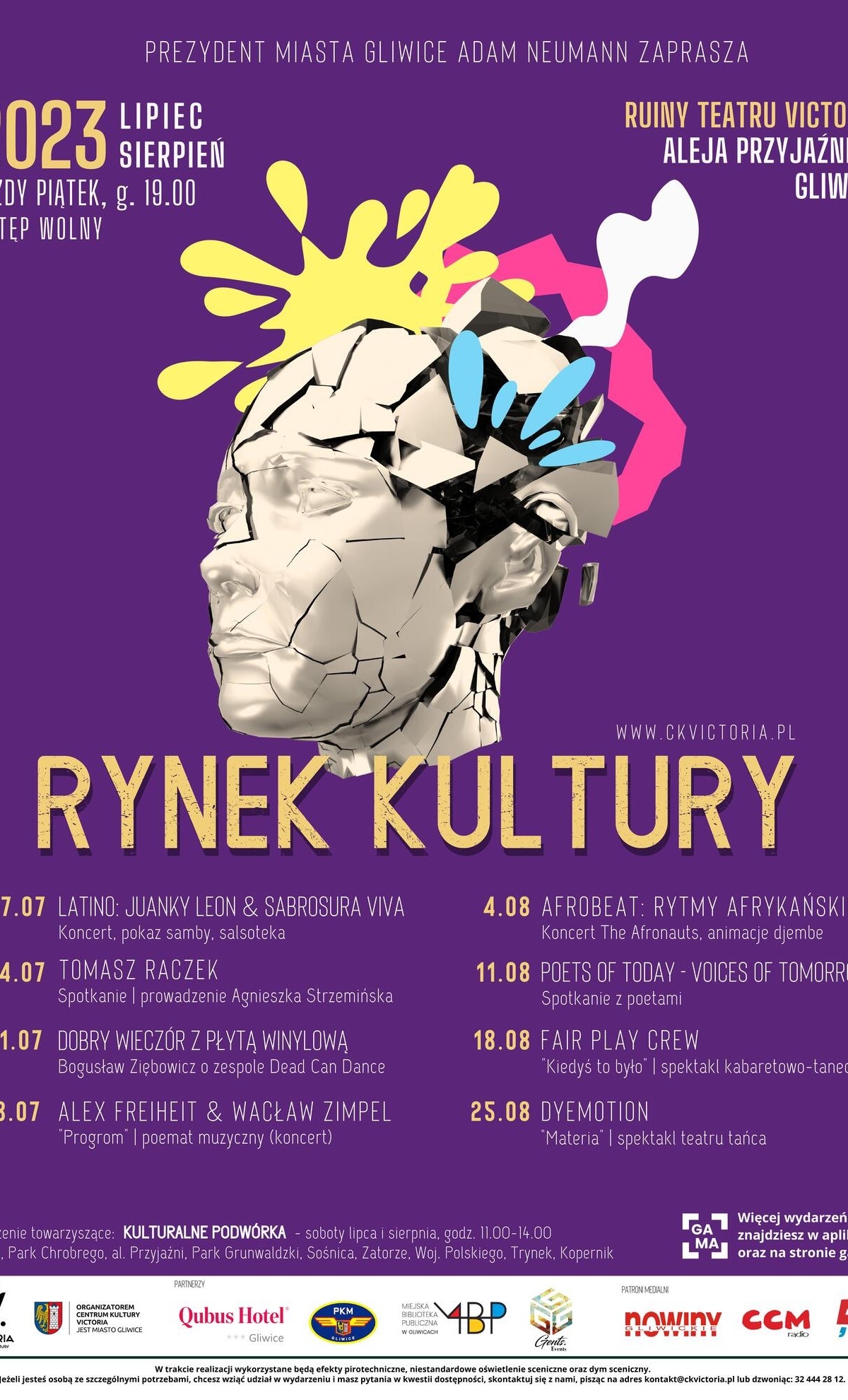 W te wakacje kulturalne serce miasta mocniej będzie biło na alei Przyjaźni i w ruinach Teatru Victoria. 7 lipca ruszył Rynek Kultury, który w każdy piątkowy wieczór będzie otwarty dla wszystkich! Miłośnicy sztuki, dobrej zabawy i relaksu poczują się spełnieni, ale dla siebie znajdą coś także głodni wiedzy i nowych doznań.