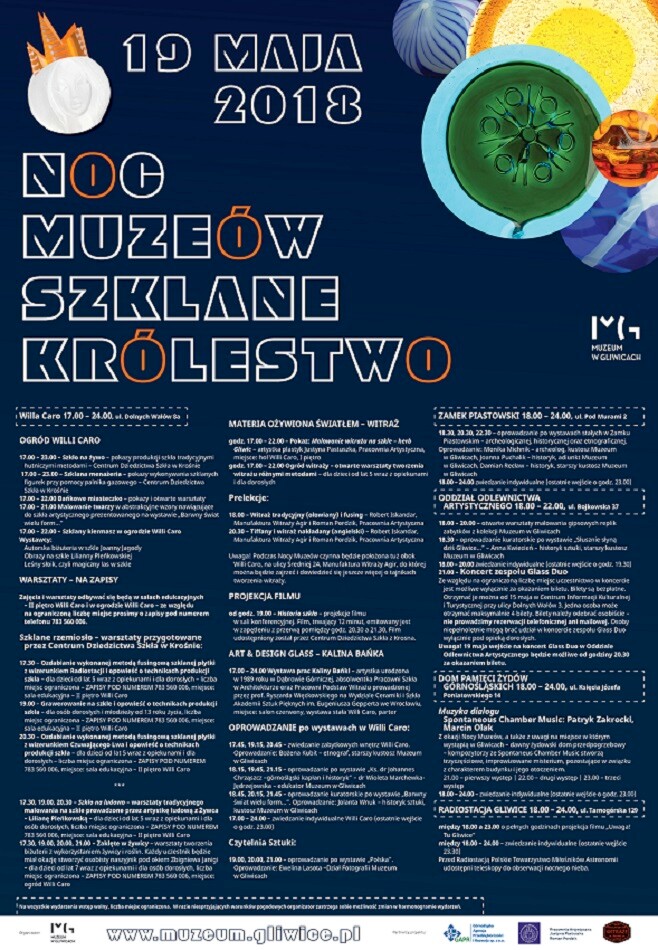 To tylko niektóre z przygotowanych przez Muzeum w Gliwicach z okazji Nocy Muzeów propozycji. Szczegółowy harmonogram wydarzeń we wszystkich Oddziałach Muzeum w Gliwicach zawarty jest Programie Nocy Muzeów.