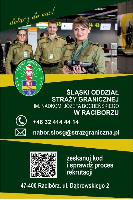 Śląski Oddział Straży Granicznej prowadzi ciągły nabór kandydatów do służby. Chcesz być jednym z nich? Wejdź na stronę bip.slaski.strazgraniczna.pl i dowiedz się jak aplikować.