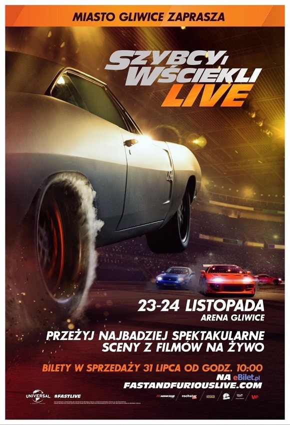 Dzięki partnerstwu i wsparciu Miasta Gliwice, sprzedaż biletów na widowisko Fast&Furious Live w Arenie Gliwice ruszy 31 lipca 2018 o godz. 10:00, w serwisie eBilet.pl. Więcej informacji na stronie Arenagliwice.com.