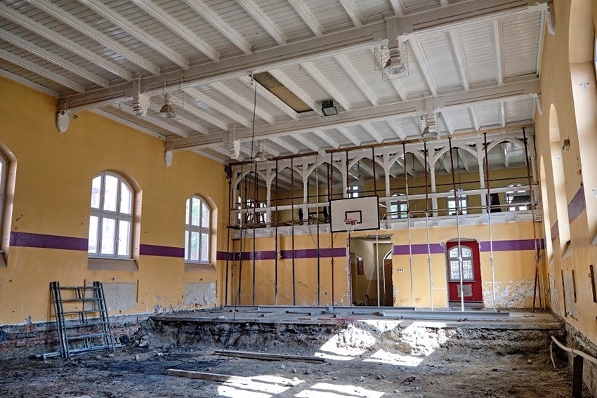 W równym stopniu zaawansowane są prace w przyszłej sali koncertowej, w której wzmocniono konstrukcję dachu. W najbliższym czasie ruszą prace związane z zagospodarowaniem terenu, wymianą ślusarki okiennej oraz czyszczeniem elewacji budynków.