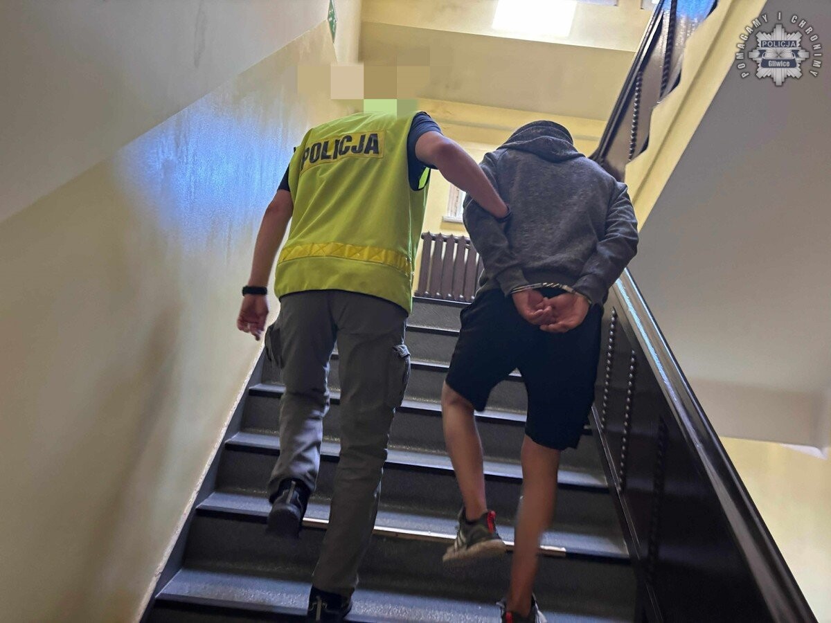 Policjanci Komisariatu Policji I w Gliwicach zatrzymali 40-letniego mężczyznę, który w nocy wszedł do mieszkania na terenie miasta, dokonał kradzieży telefonów komórkowych oraz innych przedmiotów, a następnie – podczas próby ucieczki – użył przemocy wobec właściciela lokalu.