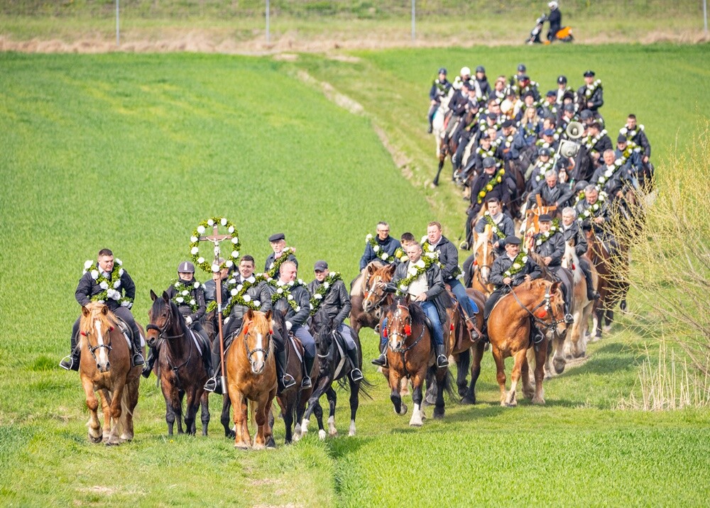 W poniedziałek wielkanocny w Ostropie odbyła się tradycyjna czterogodzinna procesja konna – kilkudziesięciu jeźdźców objechało należące do parafii pola modląc się o dobre plony.