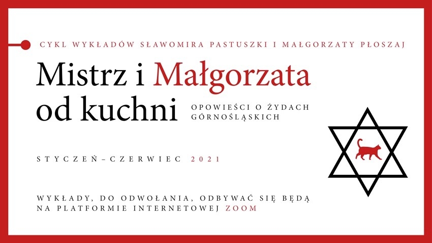 Przez pierwsze miesiące Mistrz i Małgorzata będą prowadzili wykłady ze swoich domów, dlatego będzie i kuchnia, i koty, goście specjalni, czy inne dźwięki towarzyszące domowemu zaciszu. Ale i o takim życiu; zwykłym, cichym, a innymi razem - bajecznie pięknym, właśnie o życiu "od kuchni" będziemy słuchać w opowieściach o górnośląskich Żydach. Jednak mamy nadzieję, że wiosną spotkają się Państwo z wykładowcami bezpośrednio, w naszym domu - Domu Pamięci, w którym znów po ciszy, która przyszła do nas wraz z pandemią, zapanuje gwar i radość.