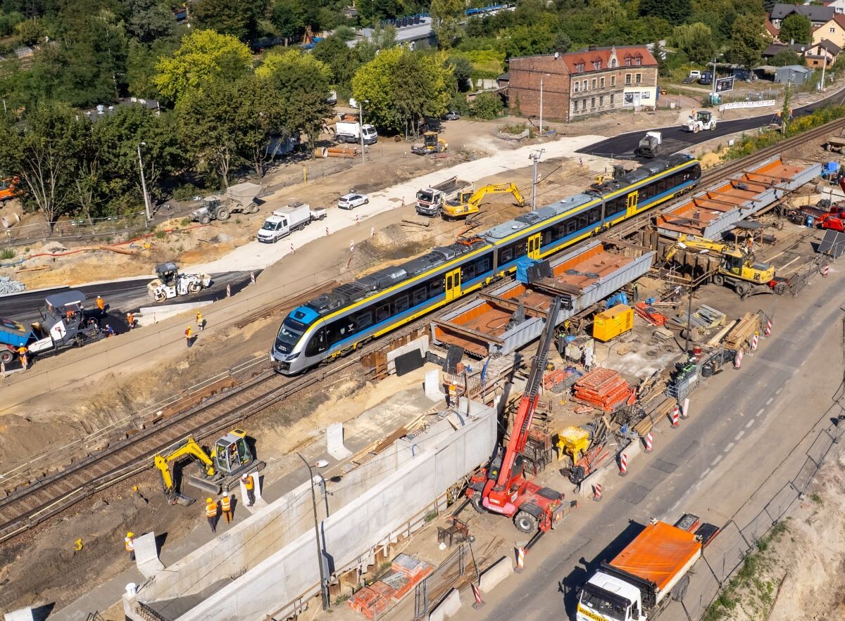 W wielu miejscach pracują obecnie maszyny budowlane, dźwigi, trwają roboty ziemne i konstrukcyjne. Równolegle działają miasto i kolejowa spółka, więc wszystko musi być dobrze skoordynowane. W ramach drogowej inwestycji, za którą odpowiada Zarząd Dróg Miejskich, na ulicach trwa dalsze obniżanie terenu czy budowa kolejnych fragmentów nowej podziemnej infrastruktury.