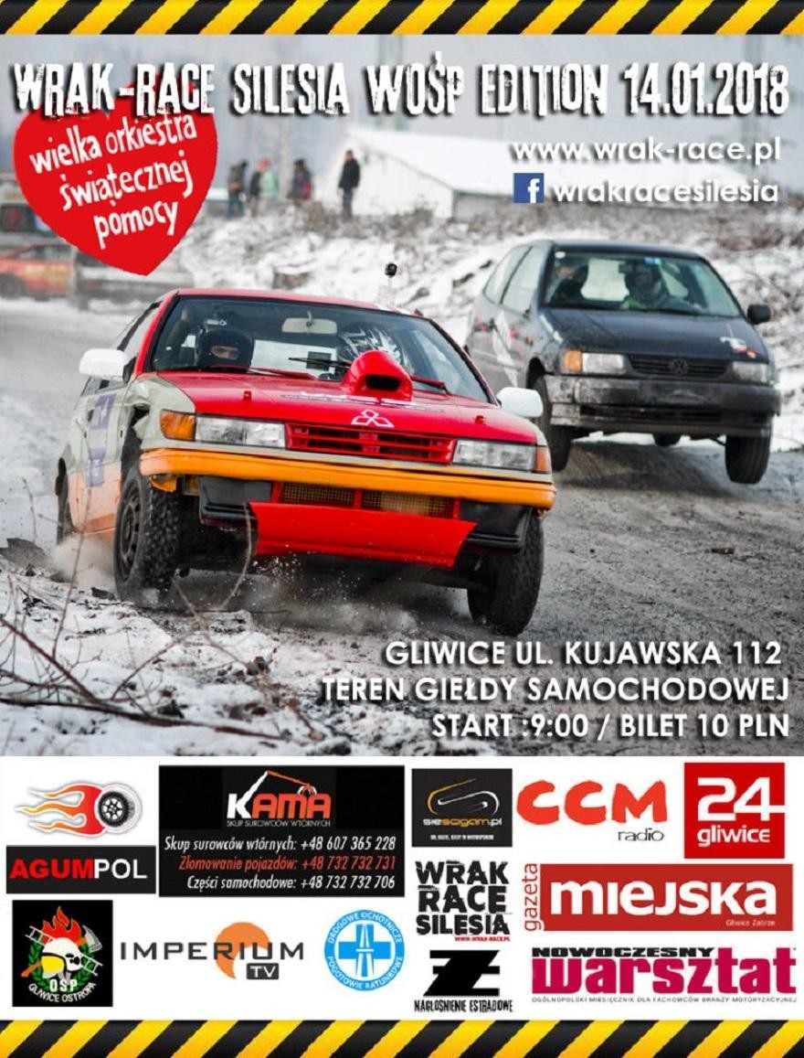 To nie koniec sportowych emocji przy giełdzie samochodowej. W niedzielę 14 stycznia, o godz. 9.00, przy ul. Kujawskiej 112 rozpocznie się WRAK-RACE Silesia, czyli ekstremalne wyścigi zdezelowanych samochodów, które „lata świetności” mają już za sobą, a ich wartość nie przekracza 1000 zł. Każdy z zawodników będzie miał do pokonania 20 minut na torze w biegu kwalifikacyjnym, po którym odbywają się 15-minutowe półfinały i emocjonujący finał.