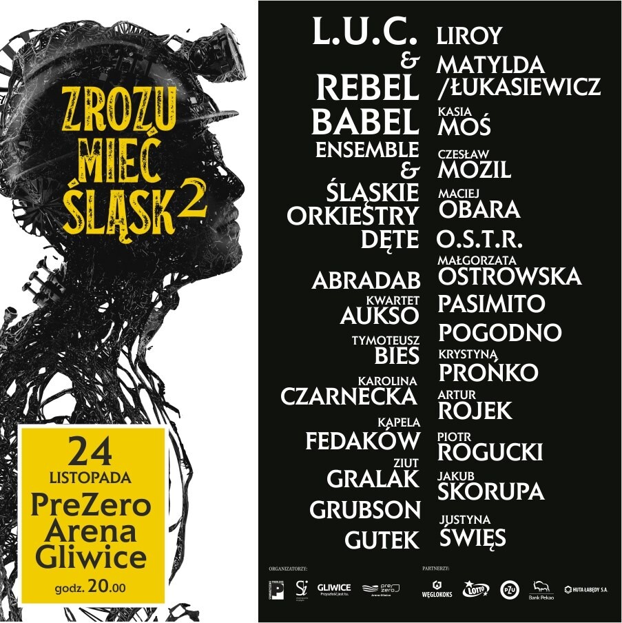 Kiedy na jednym koncercie pojawią się między innymi: Abradab, Grubson, Gutek, Liroy, L.U.C., Czesław Mozil, O.S.T.R., Małgorzata Ostrowska, Pogodno, Krystyna Prońko, Artur Rojek, Piotr Rogucki i Justyna Święs, to musi być wyjątkowe wydarzenie. A jeśli wystąpią jeszcze Rebel Babel Ensemble & śląskie orkiestry dęte (KWK Rydułtowy, KWK Marcel, KWK JasMos, KWK Sośnica, Huta Łabędy i Sosnowiecka Orkiestra Dęta) oraz Kwartet Aukso, Tymoteusz Bies, Karolina Czarnecka, Kapela Fedaków, Ziut Gralak, Matylda / Łukasiewicz, Kasia Moś, Maciej Obara, Pasimito, Jakub Skorupa oraz sztuczna inteligencja, współodpowiedzialna za wizualizacje, to musi to być koncert z cyklu Zrozumieć Śląsk.