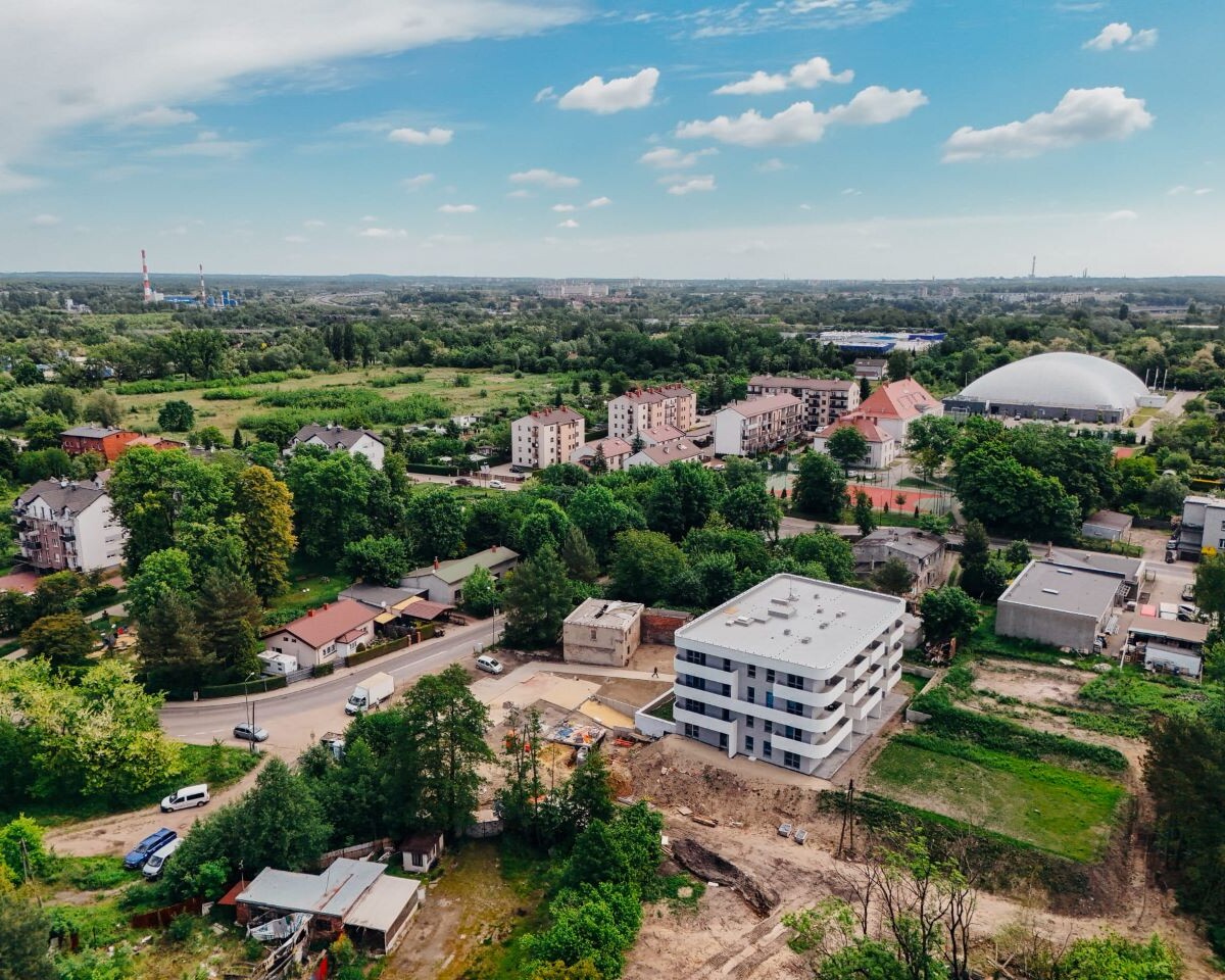 Czterokondygnacyjny budynek z windą i podziemnym garażem oferuje mieszkania o powierzchni od ok. 28 do 57 m2 – od kompaktowych kawalerek po przestronne trzypokojowe lokale. Na parterze znajdują się mieszkania z tarasami, z których jedno – całkowicie pozbawione barier architektonicznych – przeznaczone jest dla osoby z niepełnosprawnością. Lokale na wyższych piętrach mają balkony.