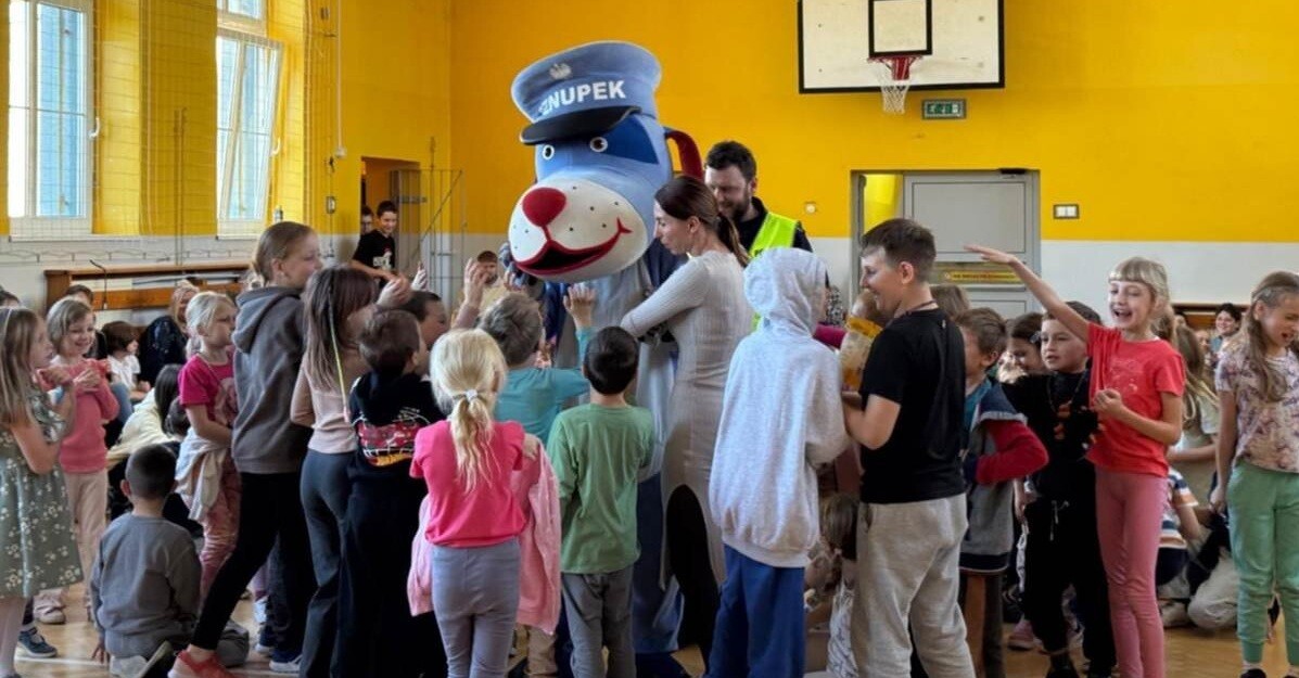 Nie zabrakło również części artystycznej przygotowanej przez uczniów. Uczestnicy śpiewali piosenki i pokazywali, jak promują bezpieczeństwo w swojej szkole. Największe emocje wzbudził oczywiście Sznupek, z którym dzieci mogły się przywitać, przybić „piątkę” i zrobić pamiątkowe zdjęcia.